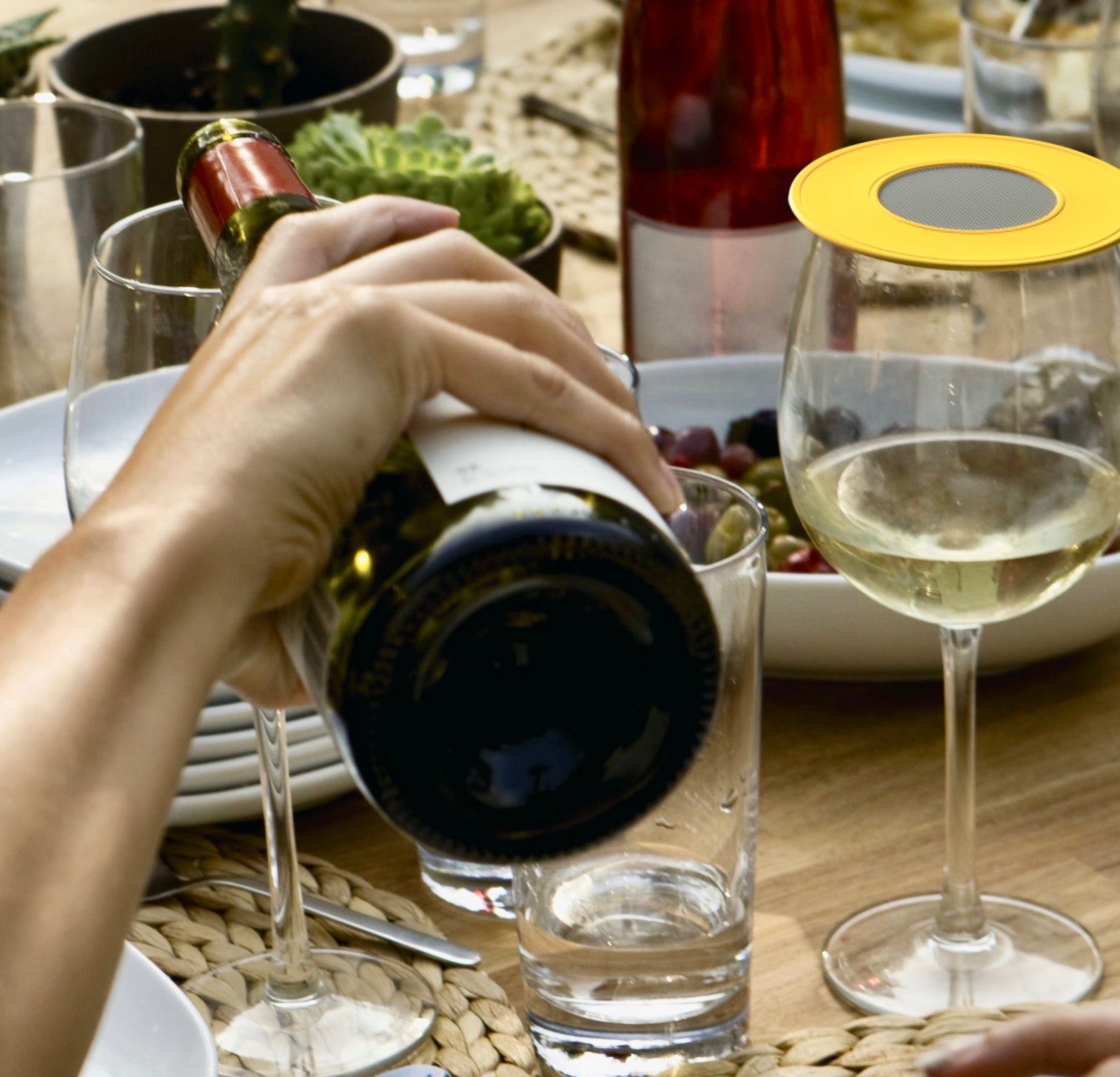 Protect your favorite wine with Drink Tops™ VENTILATED wine glass covers! A stainless-steel screen surrounded by BPA-free silicone rim lets wine breathe and protects from outdoor elements. Just Cover, Sip, and Enjoy!